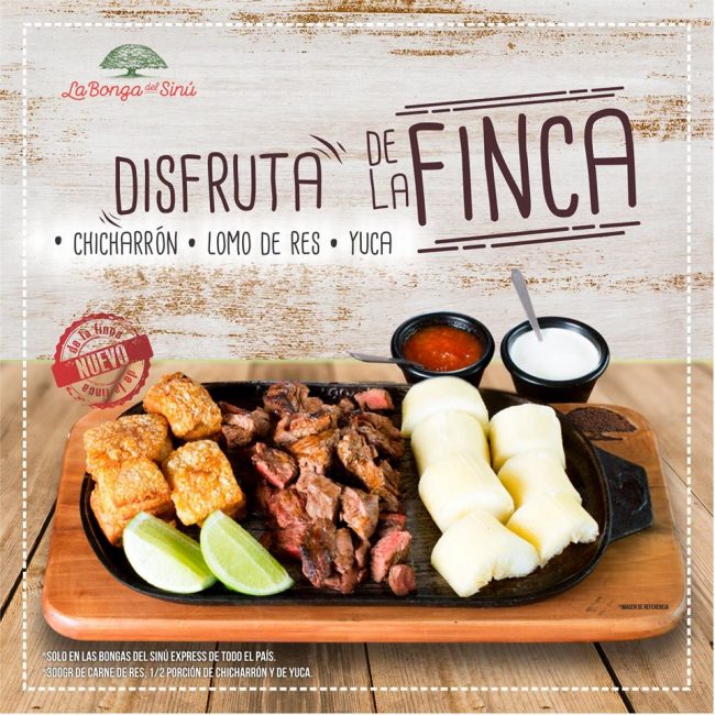 Disfruta de la Finca – Chicharron · Lomo de res · Yuca